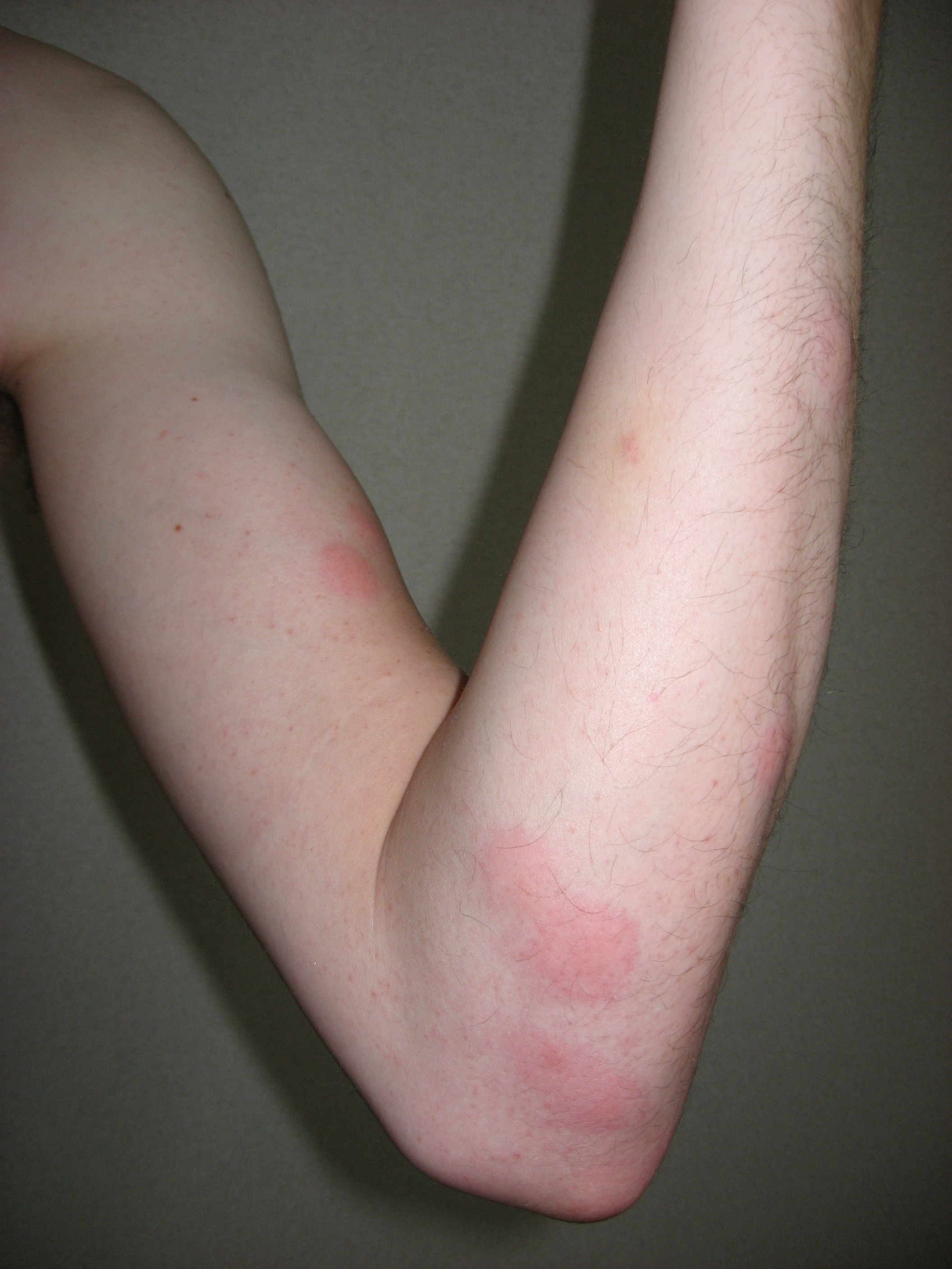 D.’s arm a few hours later. Some kind of allergic reaction we think. For the next two days, his arm was swollen and numb.