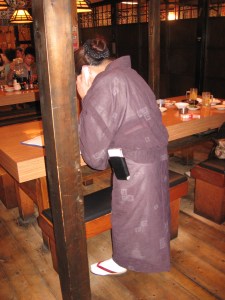 The result of the evening is that I am now on the Tsubasaya blog! The manager – a stately lady in kimono – saw me talking to a Japanese girl and exchanging telephone numbers. Inspired by this intercultural contact, she asked to take a picture to post on the Tsubasaya blog. Check out the Tsubasaya blog (click here)! If anyone could translate what they write about the picture, I would be most appreciative.