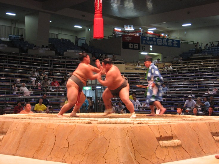 For those of you who live on another planet and have never heard of sumo: sumo is Japanese wrestling. Two very big guys try to push each other out of a ring, or try to make the other one touch the ground with a body part other than the soles of his feet. There are few things as Japanese as Sumo.