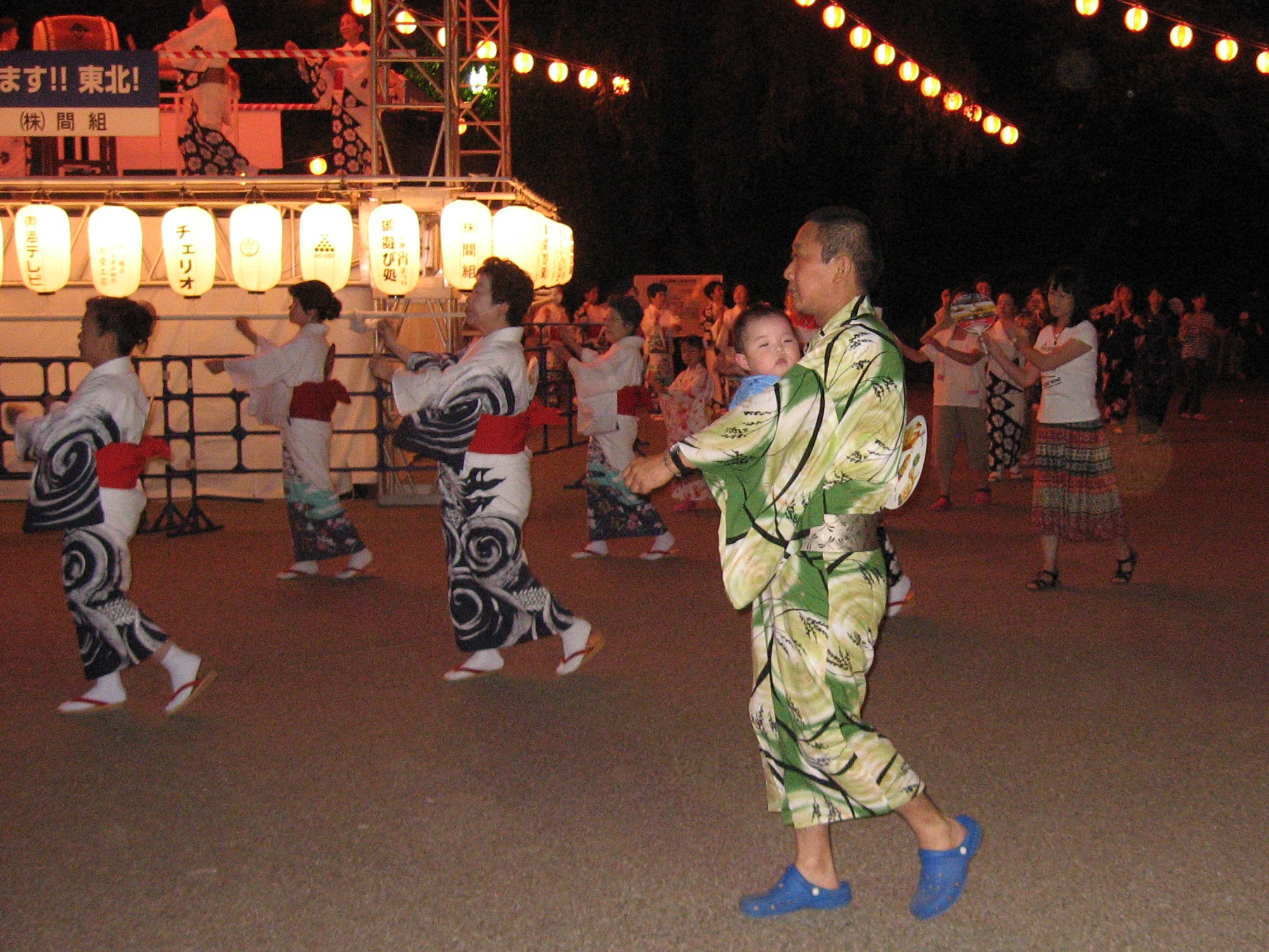 Bonodori dancing – Another occasion for wearing a yukata is at the Bonodori dances in August (although in the Tokyo region it’s mostly in July). People form a circle around a stage that houses the musicians and perform the dances in unison. Young and old join together to enjoy this typical summer pass time. Read more about Obon dancing.