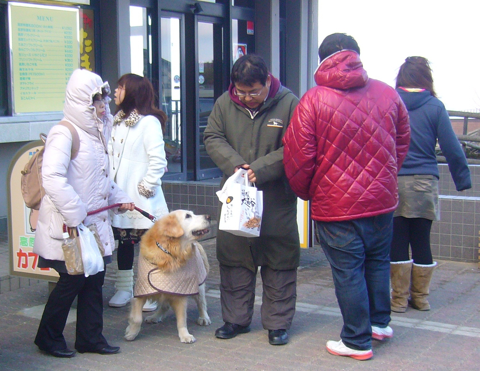 It was so cold that even dogs were dressed in warm coats, as you can see in the picture below. But if you glance to the girl in the right of the picture, you might notice that she isn’t wearing a coat, just a sweater. How she manages to brace the cold for even five minutes in that attire is beyond me.