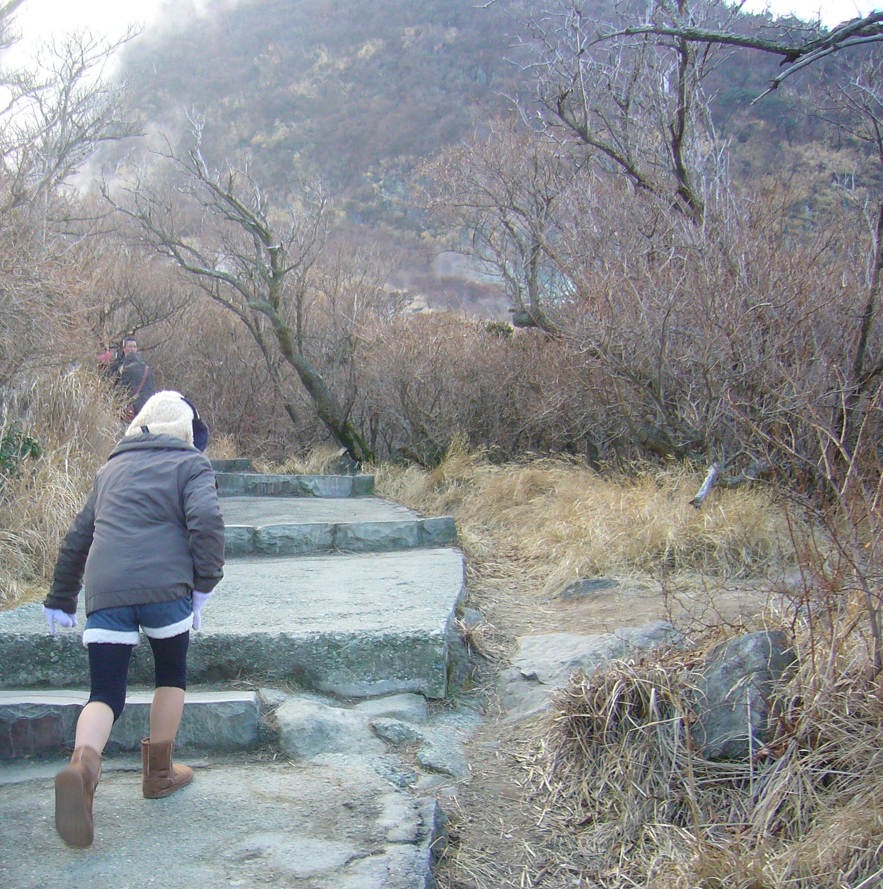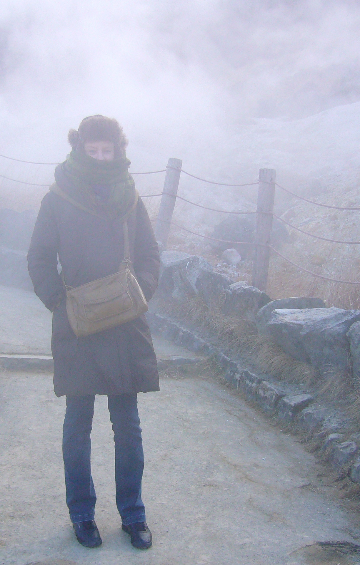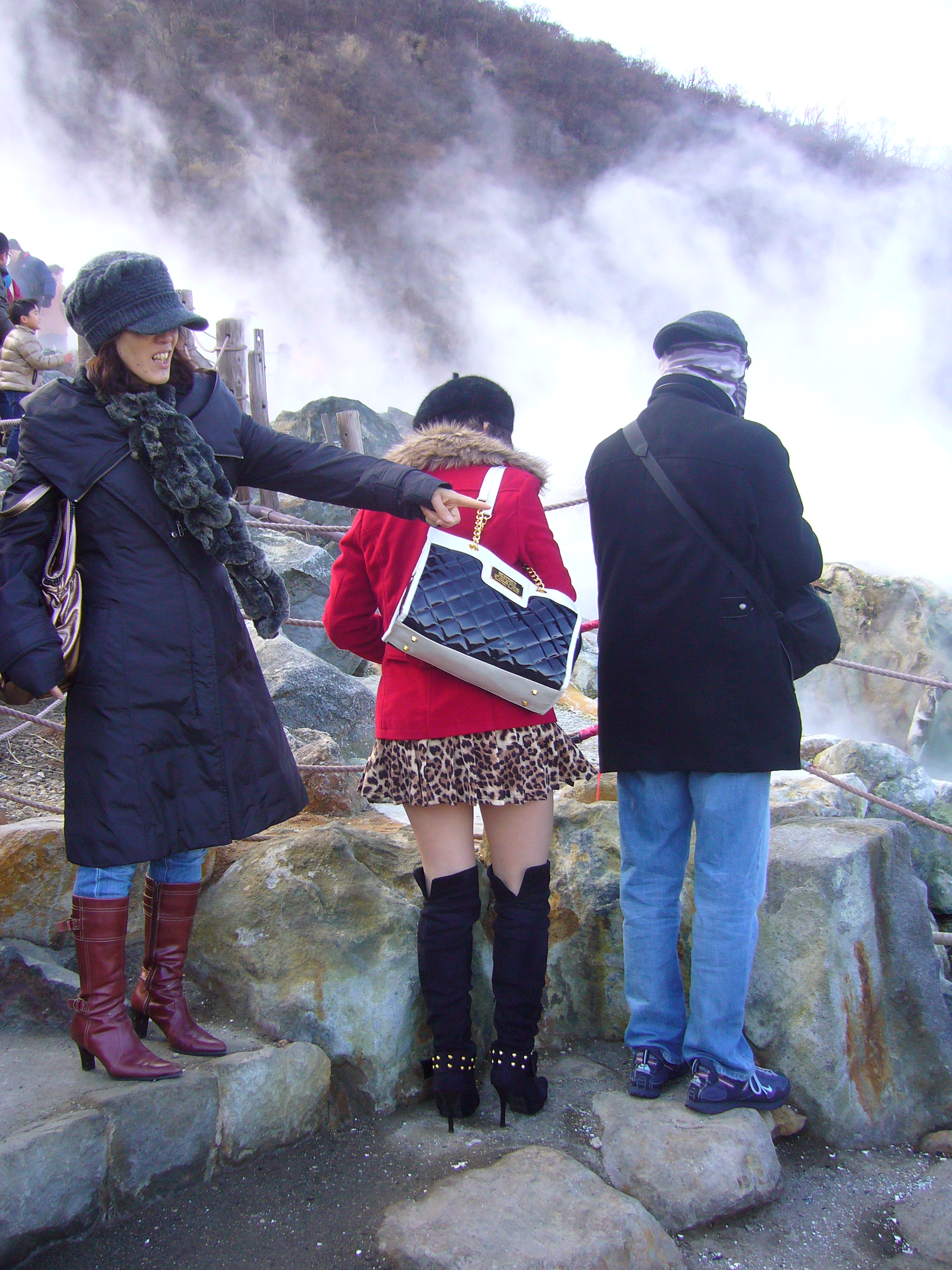 In January we visited Hakone. We took a cable car to the top of a mountain, where it was freezing cold. As soon as we left the relative comfort of the cable car, we had to brace ourselves against gusts of icy wind that chilled us to the bone. Despite having donned up in my full winter armour, I still felt like my face was freezing off.