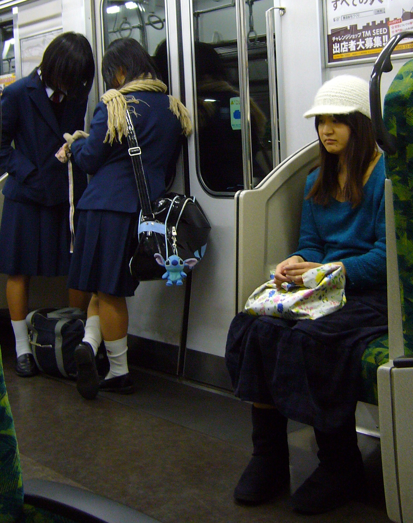And last but not least, a scene from the train on one particularly cold February evening, showing two schoolgirls with bare legs and another girl dressed in an outfit that I myself might wear in May.