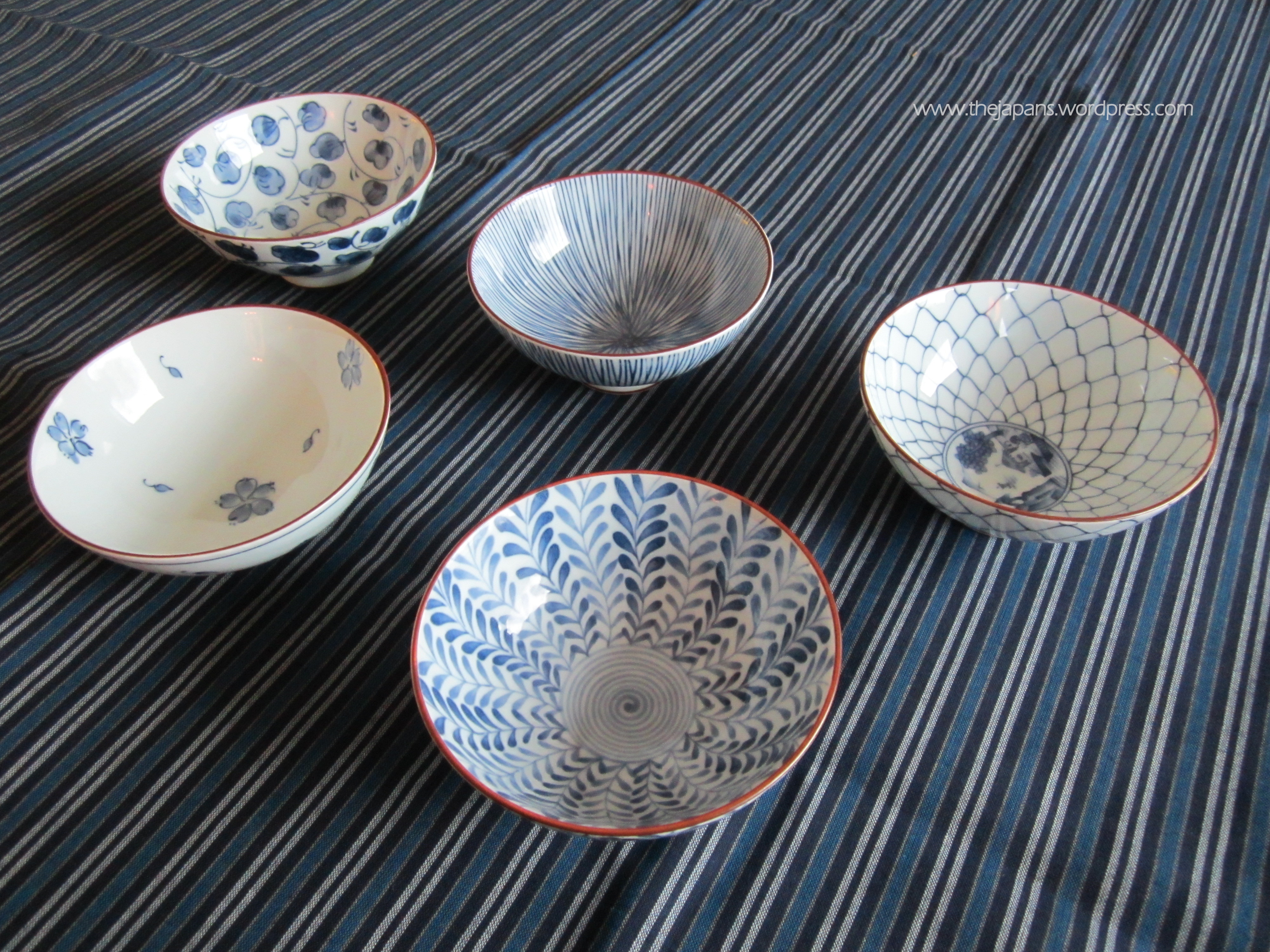 blue and white japanese rice bowls