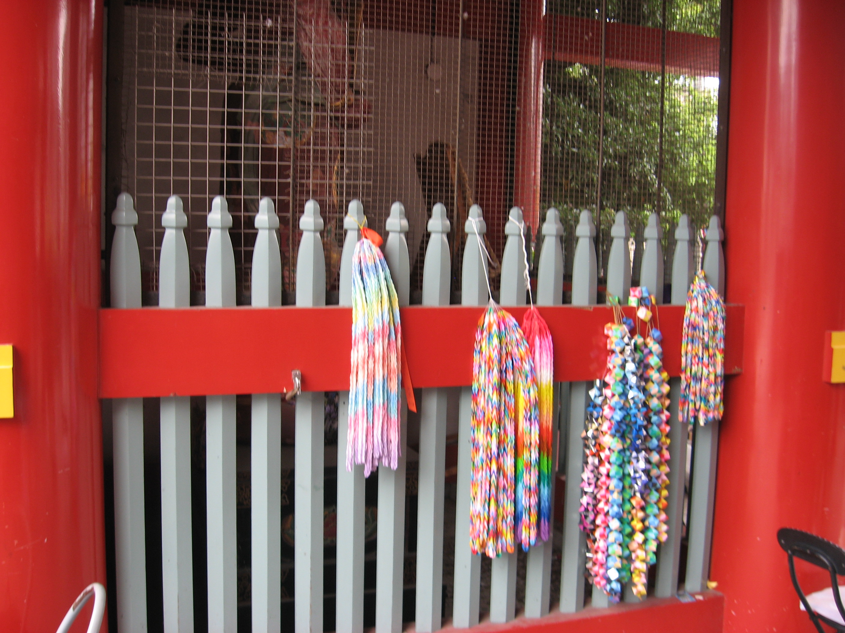 When visiting a temple in Japan, you will often see large strings of colored paper shapes, hung up in various places.