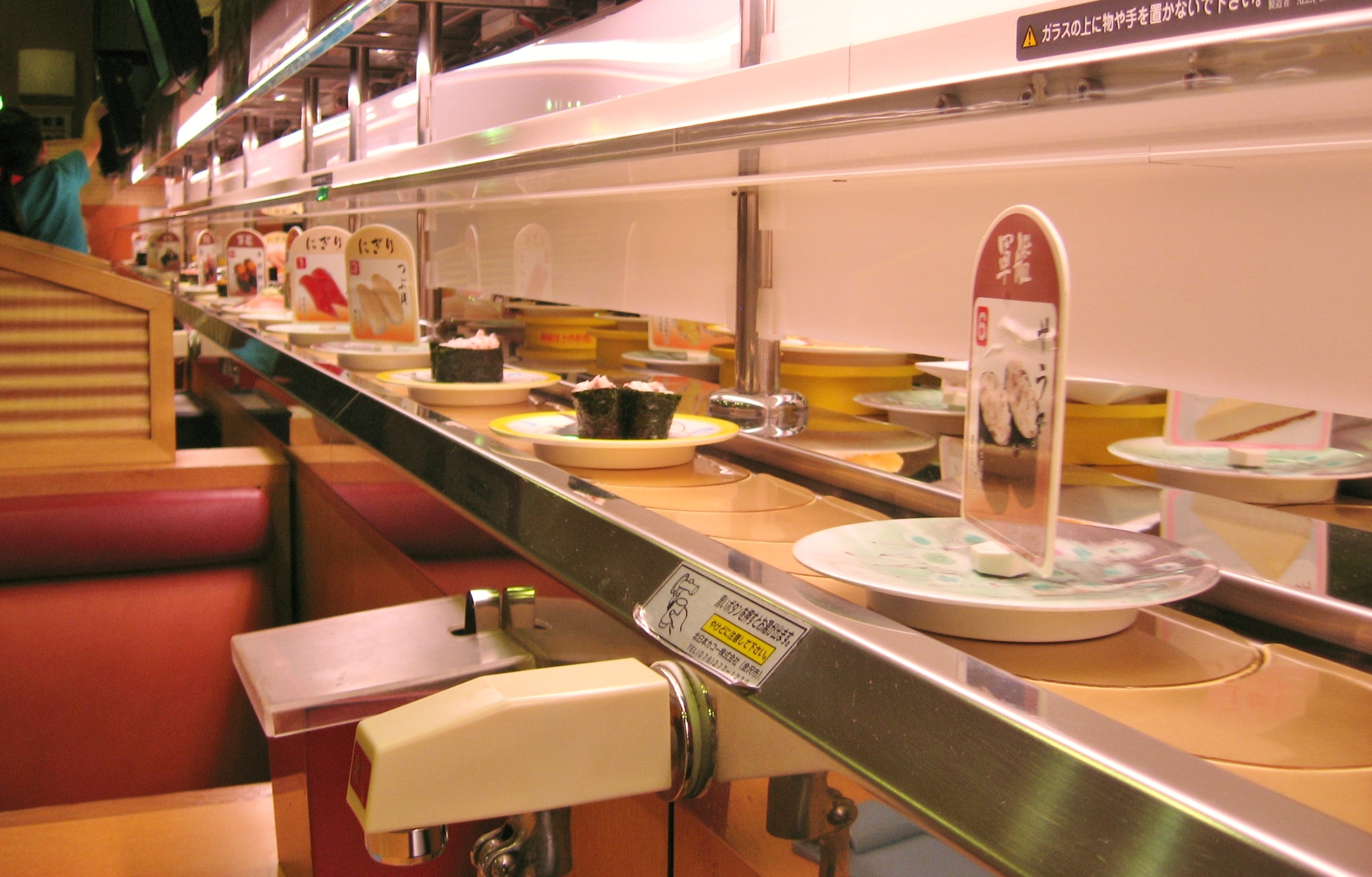 We have many conveyor belt sushi restaurants in Southern California but none of them have the individual hot water dispensers. I love those!