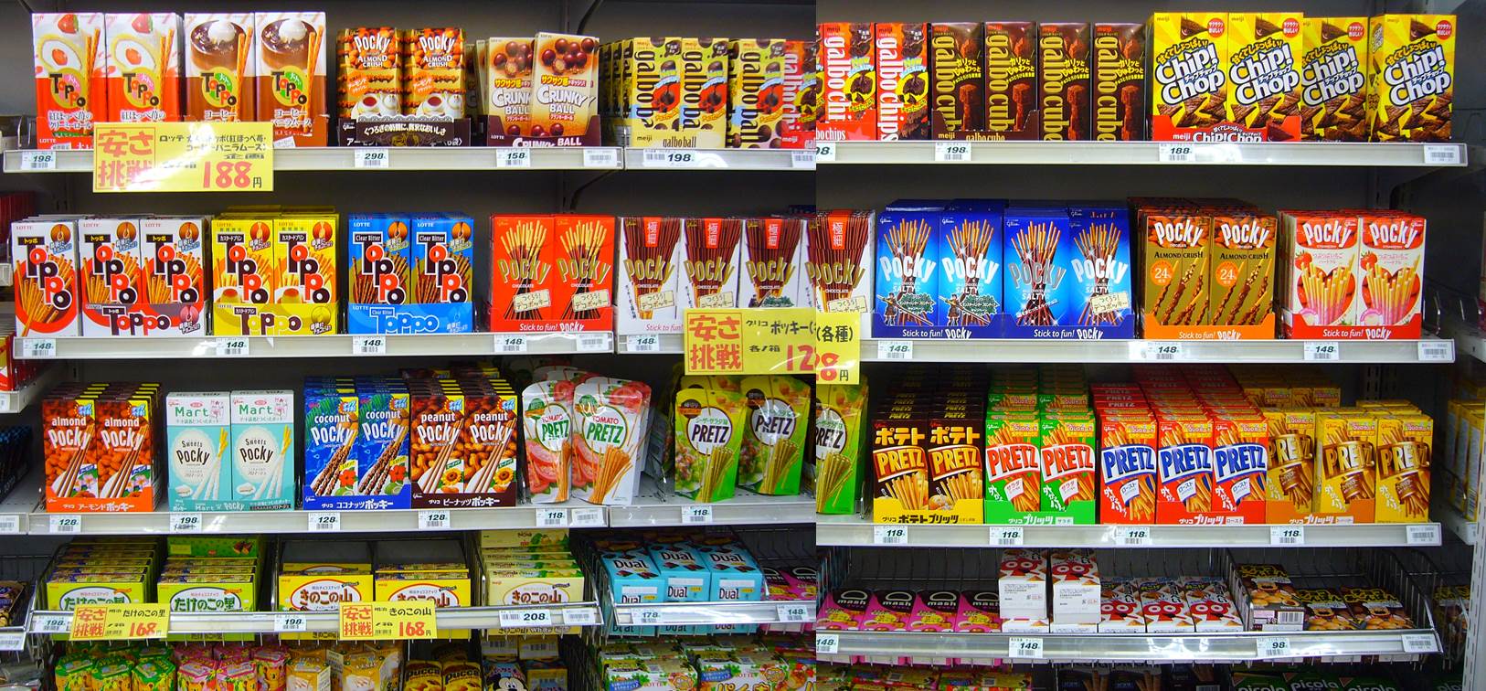 1. I believe Pocky is a Japanese brand, produced by the Japanese company Glico. Pocky was later exported to many other countries. In Belgium, Pocky is called Mikado, but the logo still contains the company name Glico in small letters. So I imagine that even with the different name, it is still owned by the Japanese company.