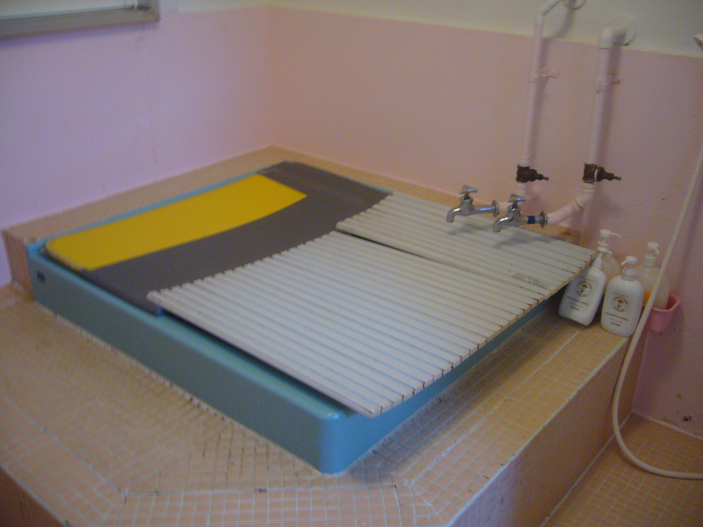 Japanese bathrooms have a particular layout to facilitate the Japanese style of bathing. In a typical Japanese bathroom, the sink area and the shower/ bath area are completely separated. Usually the bath area is in a small, separate room with a bath tub and a low faucet next to the tub. The faucet has a shower head attached to it, which also provides the option of taking a shower for those who prefer it.