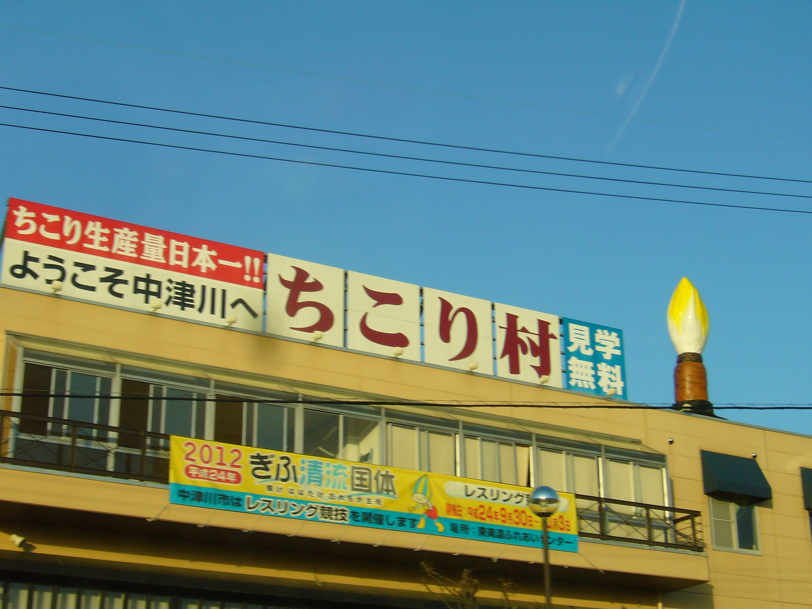 The only thing I could make out from the sign on the roof was ちこり村, which reads Chicori Mura, meaning Chicory Village. So with only that information to go on, I still had no idea if this was a factory or a tourist facility. Fortunately the internet is there to help mankind solve such mysteries. A little research revealed that this is in fact a tourist recreation park dedicated entirely to the humble chicory.