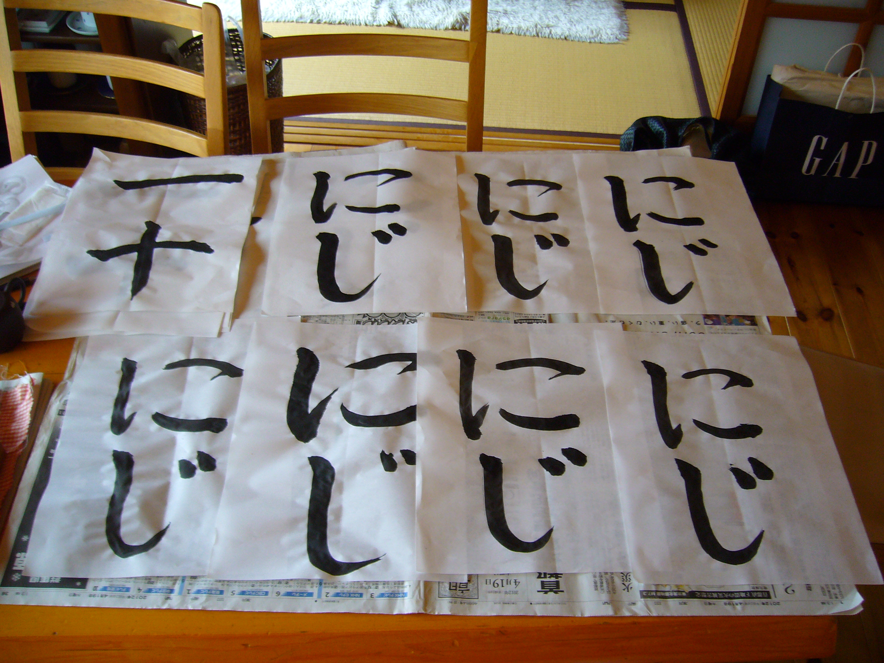 Being the eager Japan geek that I am, I tried my hand at calligraphy when I was living in Japan. I was lucky enough to be introduced to a wonderful teacher, Isogai-sensei. Here she is teaching her grandson: